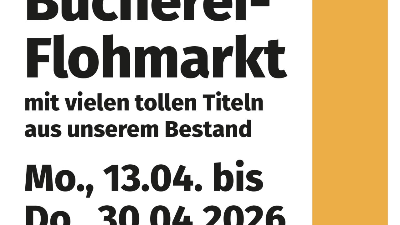 13.04.2026 - 30.04.2026 Flohmarkt Veranstaltungen 20.01.2026 - 30.06.2026 Bücherzwerge Spiel, Musik, Bewegung ... 13.04.2026 - 30.04.2026 Flohmarkt ...